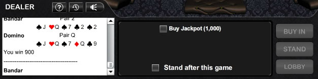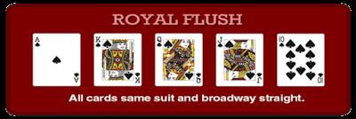 Jika Bandar dan pemain mendapatkan tingkat kartu yang sama misalnya 2 pair dengan pair yang sama maka akan di nyatakan draw dan untuk pemain yang mendapatkan kartu ROYAL FLUSH, pemain akan dibayaran double disesuai dengan taruhannya, contoh Royal Flush: