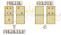 – Bandar akan selalu menang jika mendapat jumlah kartu yang sama dengan player.